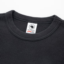 11.5oz.のコットンワッフル素材を使用したロングスリーブサーマルシャツ。襟元はタフさのあるダブルステッチで仕上げたバインダーネック仕様。左裾にRatモチーフのピスネームを挟み込み。ワンウォッシュ仕上げ。身幅はややタイトなシルエット。45サイズ展開。