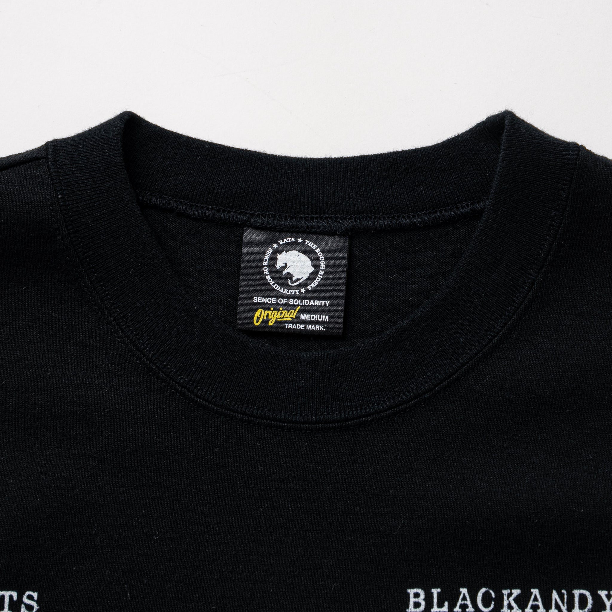 8.5oz.のコットン天竺素材を使用したL/S TEE。フロントにオリジナルグラフィック、スリーブ・バックにレターグラフィックをインクジェットプリントで表現、背面左脇にRatモチーフのワンポイント刺繍を配置。ロックネック仕上げ。レギュラーフィットシルエット。1色、5サイズ展開。