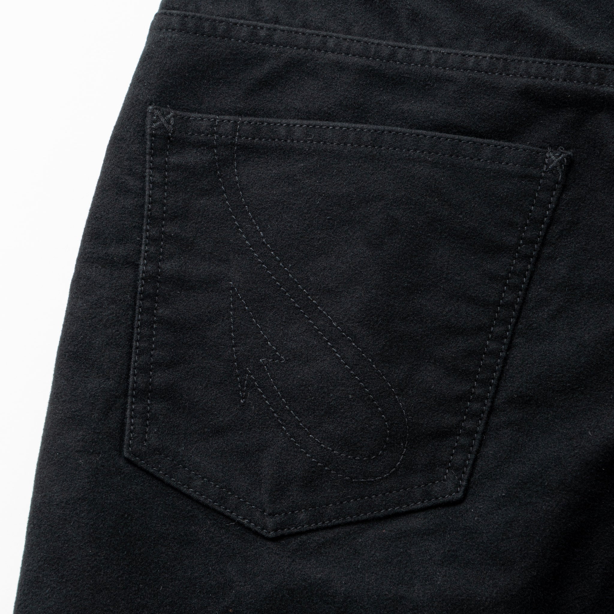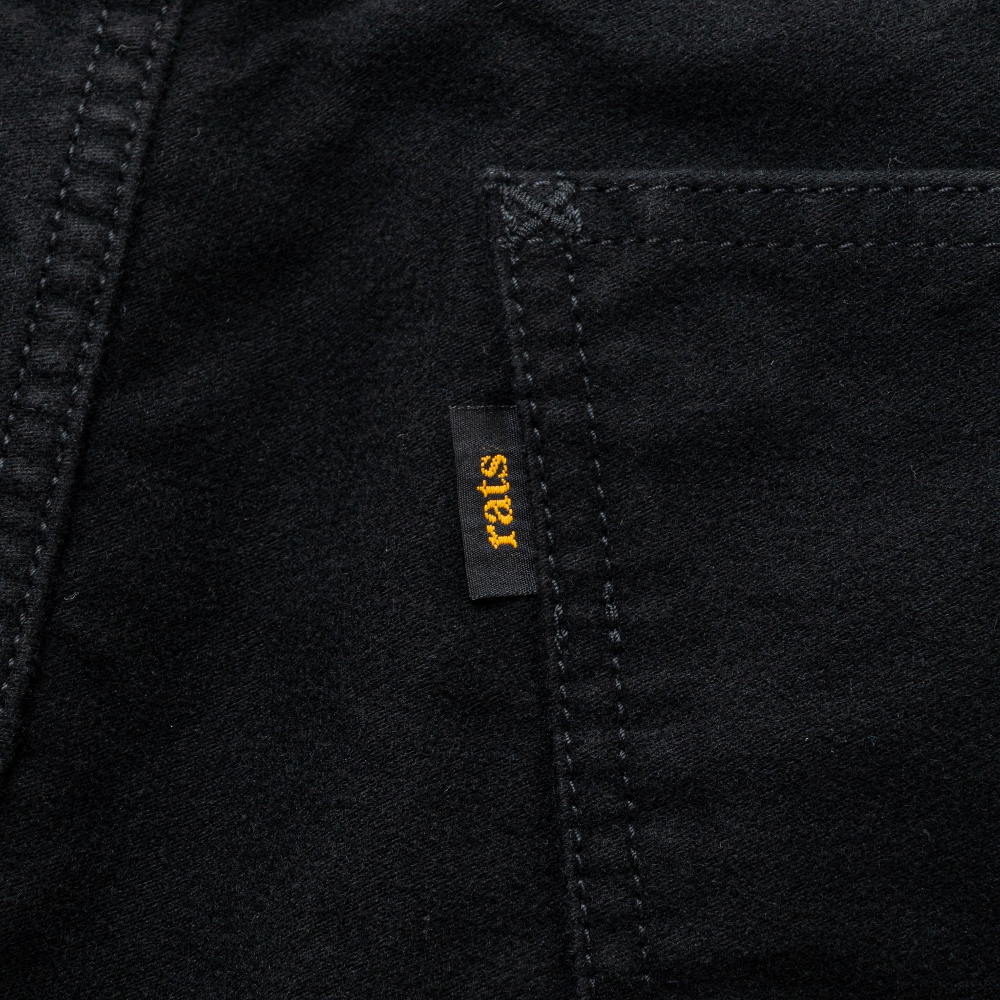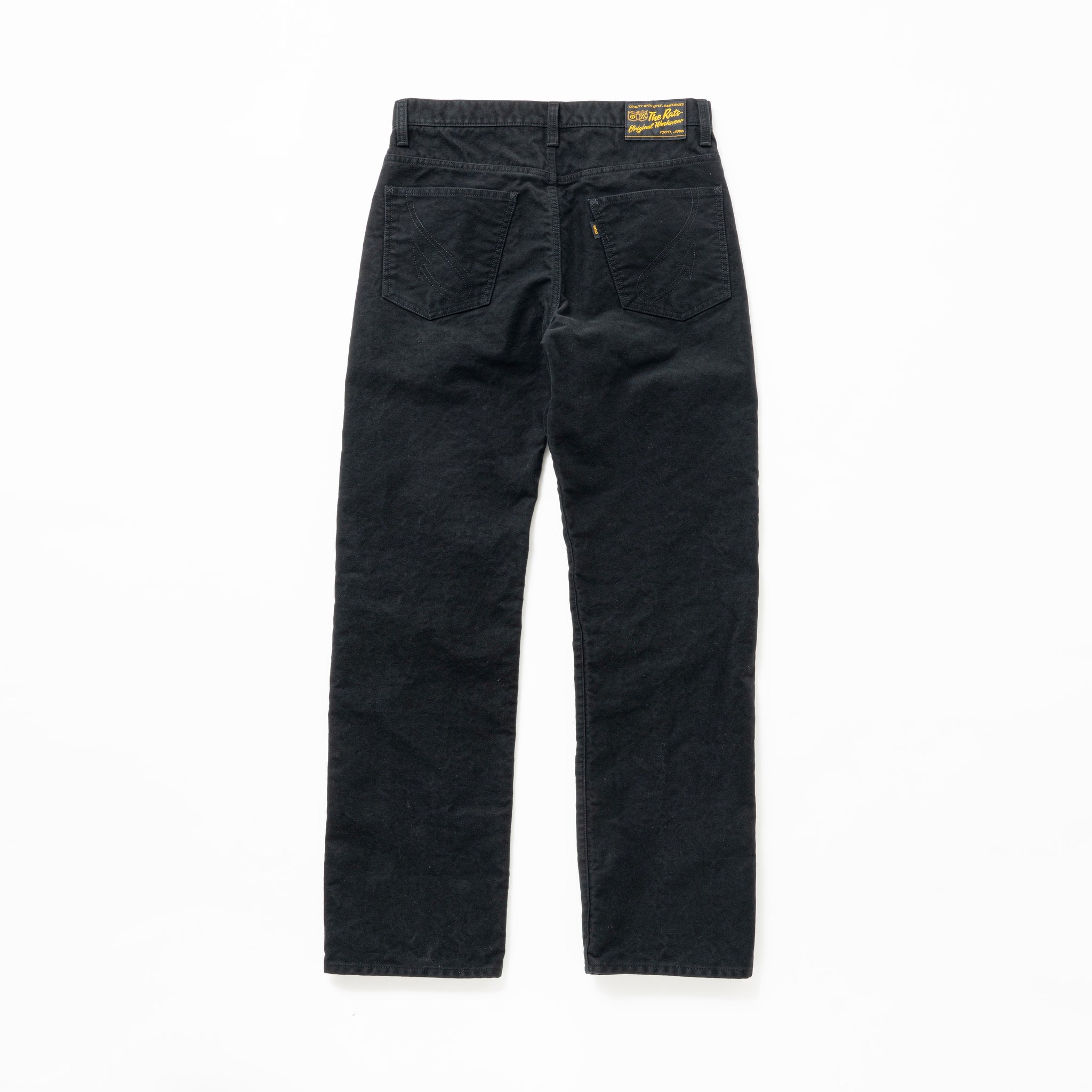 オリジナルのモールスキン生地を使用した5ポケットパンツ。両腰にL字型ポケット、フロント右にコインポケット、背面左右にパッチポケットを配置。右腰にネームを叩きつけ。ヒップポケットにはRATSデニムのアイコン、Ratテールのステッチが施された仕様。背面右ポケット左脇に黒ピスネームを挟み込み。ストレートシルエット。製品でワンウォッシュ済み。1色5サイズ展開。