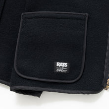 メルトンウールを使用した、RATSが定番でリリースするファミリーベスト。左胸にジッパー付きのポケット、両裾にスリットポケット、左胸ポケット上部にRATS刻印入りメタルプレートを配置。襟・前立て・裾、アームホールにパイピングを施した仕様。WALDES社製ジッパーを使用。身幅はややタイトなシルエット。1色5サイズ展開。