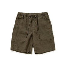 ストーンウォッシュ加工を施しヴィンテージライクな表情を演出したピュアリネン素材のイージーショーツ。両脇にスラッシュポケット、背面右に両玉縁ポケット、背面ポケット上にRATSロゴ入りの織りネームを叩きつけ。ウエスト外側にスピンドルが付属、サイズ調整が可能。レギュラーストレートシルエット。製品にてワンウォッシュ済み。35サイズ展開。