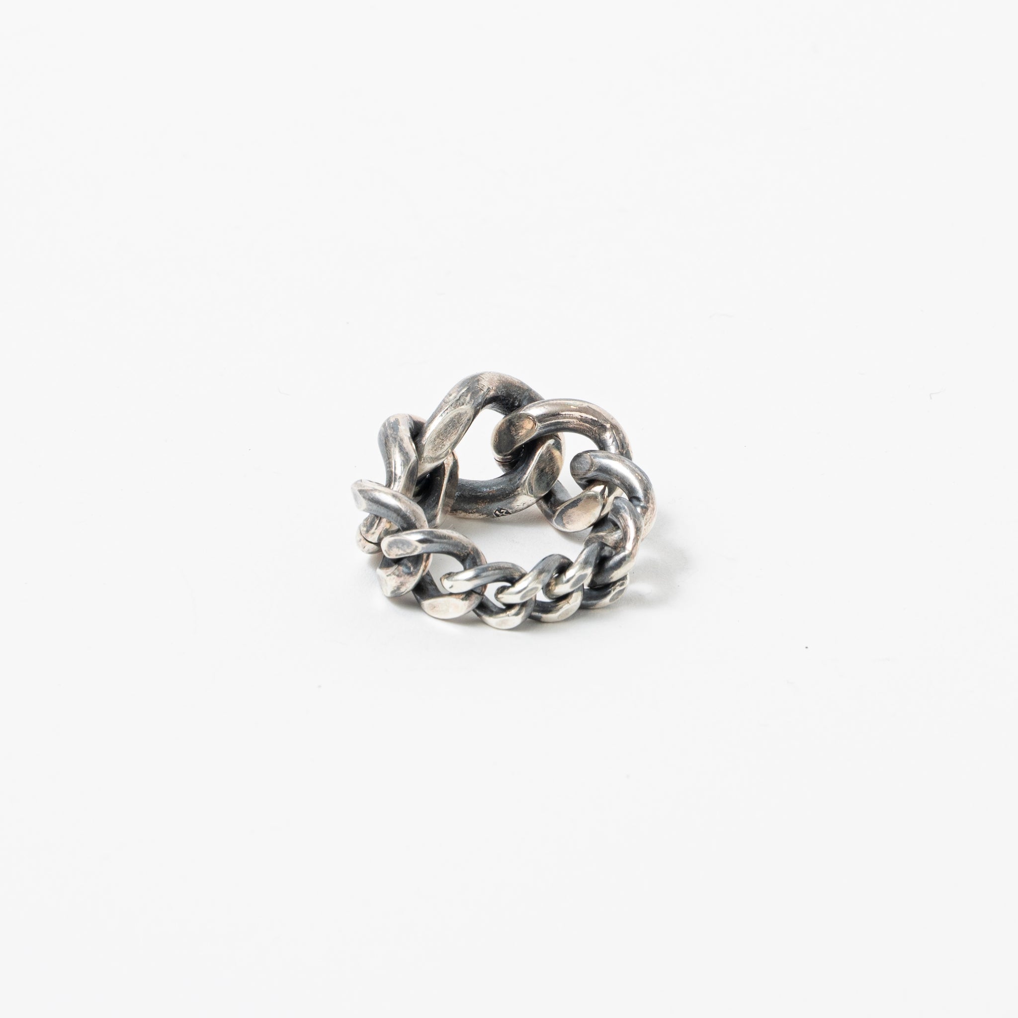 素材にシルバー925を使用し、オリジナルで作成した喜平のコマをサイズグラデーションで表現したデザインのチェーンリング。RATSと親交の深いアーティスト MASA SCULPとのコラボレーションモデル。SML3サイズ展開。