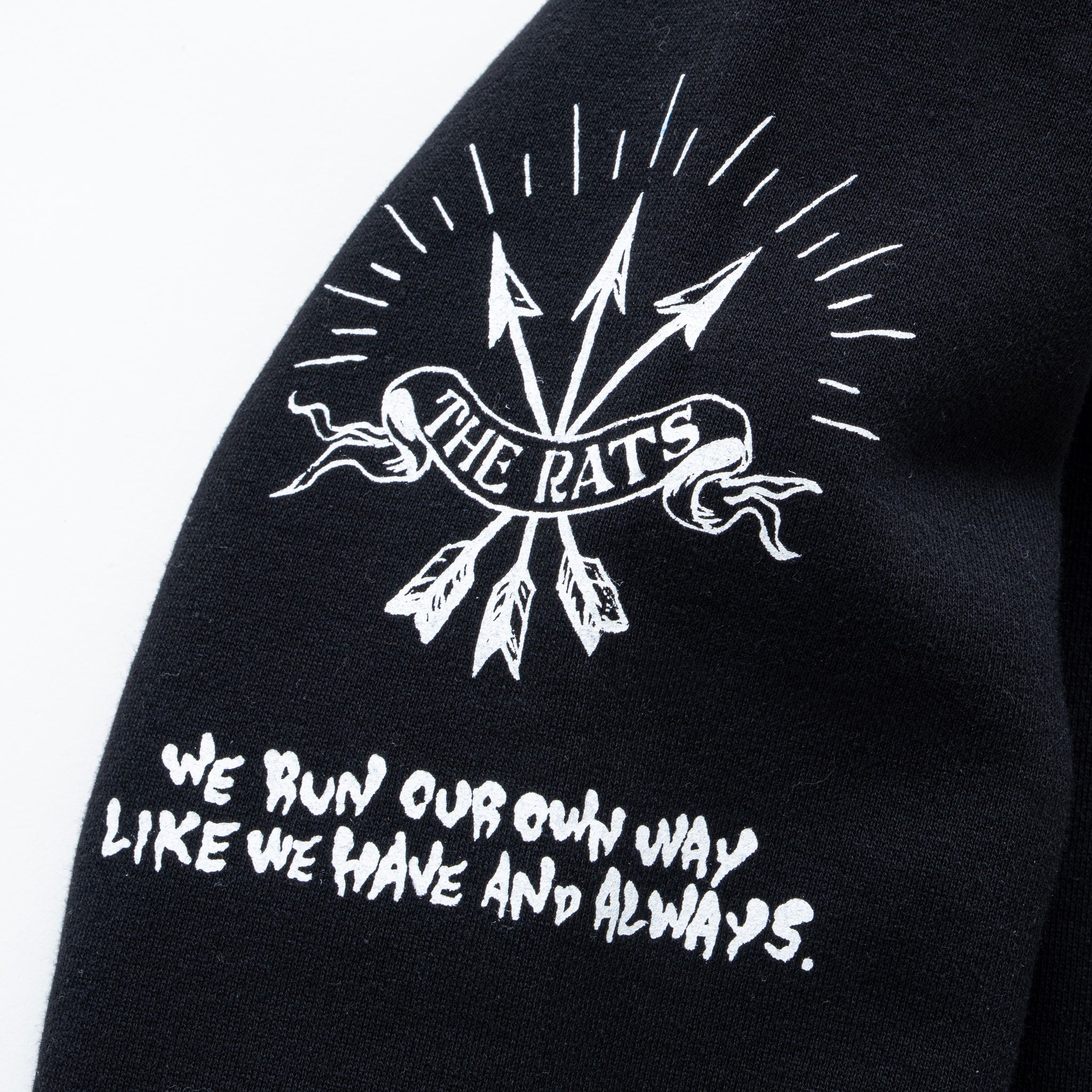 13oz.のコットン裏毛を起毛させた素材を使用したクルーネックスウェット。フロント・バック・スリーブの各所にRATSと交友関係の深いアーティストが手がけた歴代のアートワークをラバープリントで表現したインパクトあるデザイン。製品にてワンウォッシュ済み。レギュラーフィットシルエット。1色5サイズ展開。