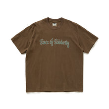 ニットのような質感で着込む程風合いの増す6.5ozの吊り編みコットン天竺素材を使用したショートスリーブTシャツ。前見頃に“SENCE OF SOLIDARITY”の筆記体ロゴを内側はラバープリント、外周をボンディング刺繍で表現したデザイン。背面右腰にRatモチーフのワンポイント刺繍。レギュラーフィットシルエット。製品にてワンウォッシュ済み。65サイズ展開。