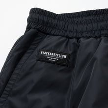 表地に撥水性のあるナイロン生地、裏地にはプリマロフト中綿入りのリップストップナイロン生地を使用したトラックパンツ。両脇にスラッシュポケット、背面右に両玉縁ポケットを配置。右腰前にBLACK AND YELLOWの織ネームを叩きつけ、左ポケット下にRatモチーフのピスネームを挟み込み。ウエスト内側にスピンドルが付属、シルエット調整が可能。ウエスト・腿周りにゆとりのあるストレートシルエット。15サイズ展開。