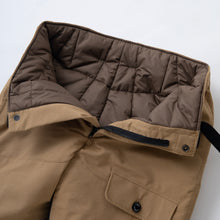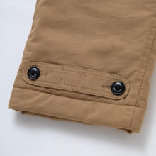 身頃にコットン/モダクリルの混紡難燃素材を使用したミリタリーイージーパンツ。ヒップ周辺の切り替え箇所は耐久性に長けたコードレーン素材。両脇にスラッシュポケット、左腿にフラップポケット、両膝に隠しファスナーポケット、背面左右にフラップポケットを配置、背面右ポケット下にはネームタグを叩きつけたデザイン。身頃裏地は中綿入りキルティング、両裾にはボタン付きアジャスターを採用。ウエストにはRatモチーフの刻印入りバックル付きウェイビングベルトを付属、シルエット調整が可能な仕様。ウエスト・腿回りにゆとりのあるシルエット。1色5サイズ展開。